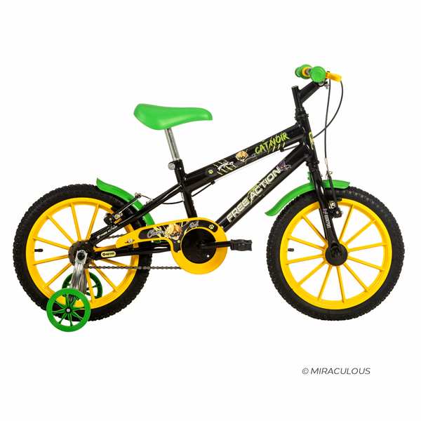 A Bicicleta Aro 16 Cat Noir® Miraculous é ideal para crianças que estão começando a pedalar com estilo, segurança e muita diversão. Com grafismo exclusivo do personagem Cat Noir®, da série Miraculous, ela encanta os pequenos fãs e estimula a imaginação durante as brincadeiras.